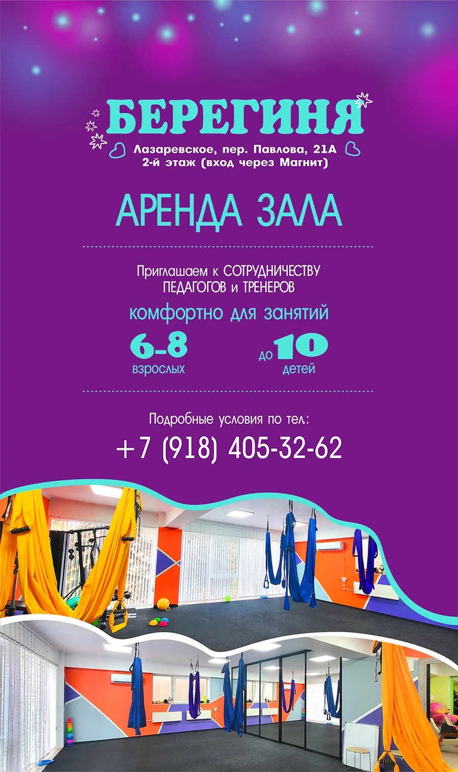 Сюда принимают тех, кто жаждет забавных впечатлений и веселых развлечений. Берегиня позволяет не только с комфортом провести время милым непоседам, но и отметить торжества.